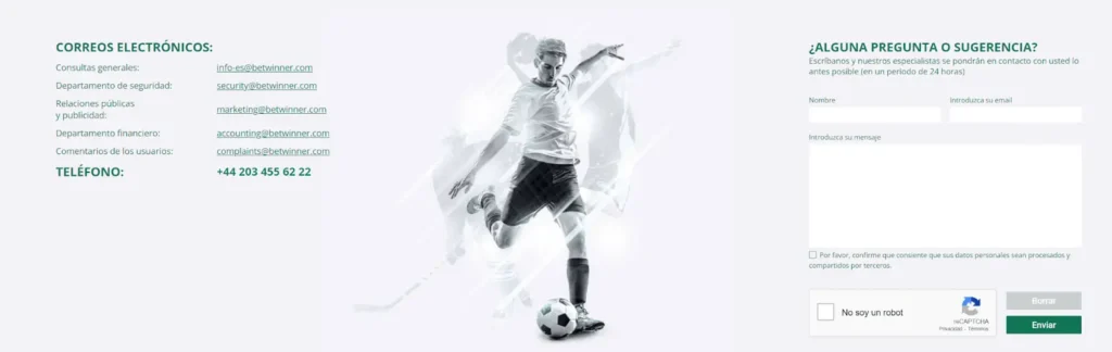 El servicio de atención al cliente de BetWinner siempre está del lado de los clientes, disponible las 24 horas del día, los 7 días de la semana para resolver cualquier problema de manera rápida y eficiente. Puedes comunicarte con el servicio a través de teléfono, correo electrónico y chat en vivo, y ofrecen asistencia en más de 20 idiomas.