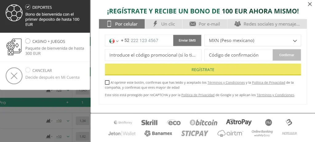 - Realiza un depósito de hasta 100 EUR, o su equivalente en pesos mexicanos.