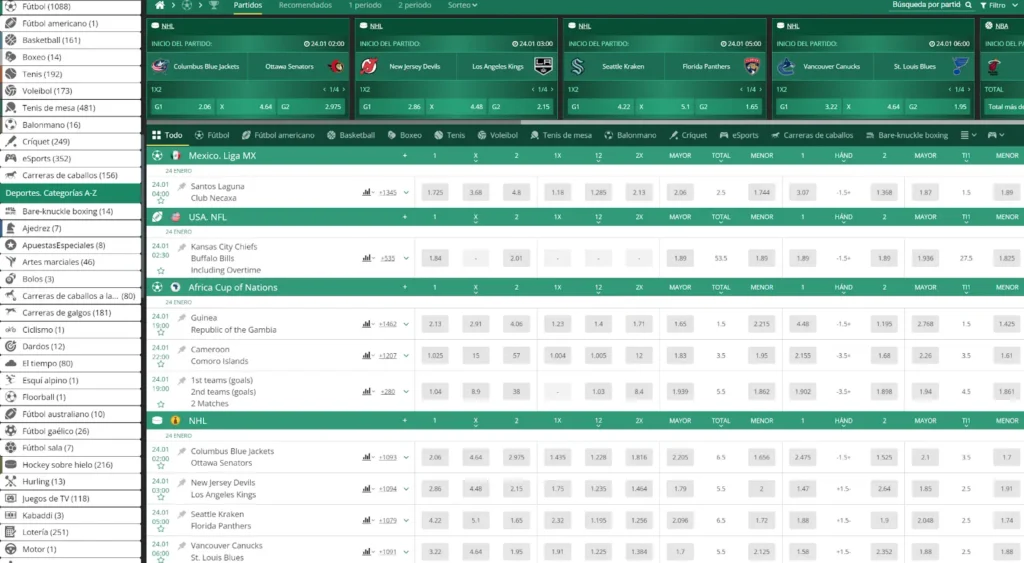 BetWinner abarca una extensa variedad de deportes (BetWinner Sports) y eventos deportivos. En esta compañía, encontrarás prácticamente cualquier deporte que te apasione y desees apostar. Únete ahora al emocionante universo de BetWinner y sumérgete de inmediato en el mercado más amplio de apuestas deportivas.